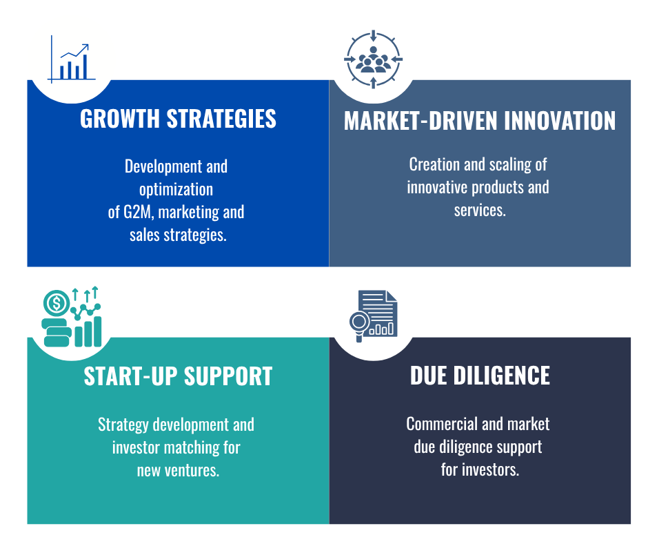- Market-driven innovation – innovative products and services – from idea to scaling.